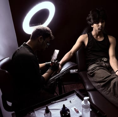 we are a team of highly skilled, award-winning tattoo artists dedicated to creating custom tattoos that are truly one of a kind. Every design is carefully crafted around your ideas, values, and personal beliefs. Known for our quality and creativity, our studio is trusted by clients and recognized as one of the leading tattoo studios in Mumbai and across India.